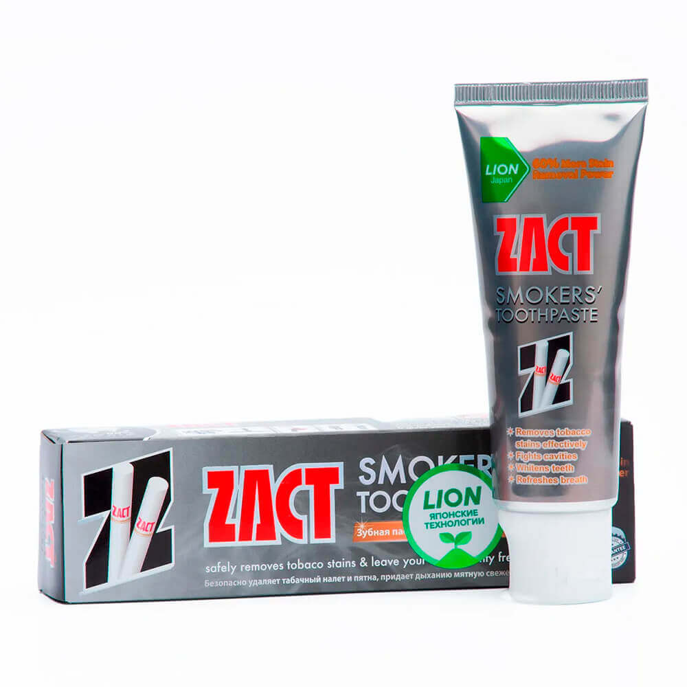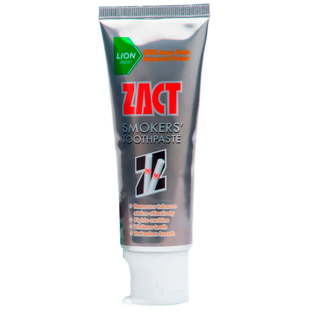Отбеливающая зубная паста для курящих LION Zact эффективно борется с налетом, препятствует появлению зубного камня и кариеса. Устраняет неприятные ощущения и запах изо рта, поддерживает свежесть дыхания, укрепляет зубную эмаль.